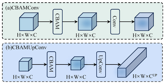 In the image reconstruction phase, standard upsampling convolutions and PixelShuffle methods often miss important spatial and channel information, resulting in suboptimal image quality. To address this limitation, we propose a novel CBAMUpConv module, which, to the best of our knowledge, is the first to integrate both spatial and channel attention mechanisms into the upsampling process, as presented in Figure 5.