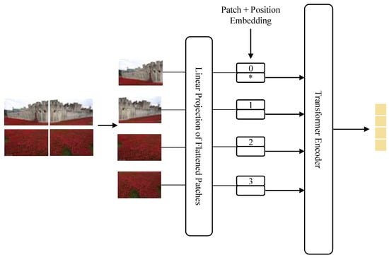 At the same time, the Vision Transformer (ViT) is used to process the input image and extract the features of the image content. The module structure is shown in Figure 3: