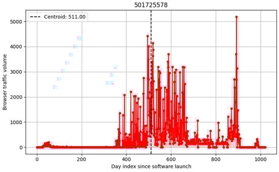 This study followed the progression of each browser dataset for two whole years, for a maximum of 730 data points each. A sample representation of five distinct browsers’ activity can be seen in Figure 5.