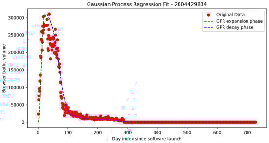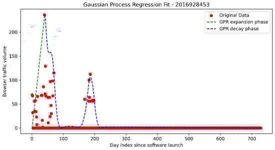 For modeling browser user-agent lifecycles’ temporal expansion and decay, we employed Gaussian Process Regression (GPR) with a Matérn kernel, selected for its robustness, flexibility, and interpretability. GPR is a non-parametric Bayesian method well-suited to our problem domain, where data are noisy, partially sparse, and often highly irregular due to user-side inconsistencies and bot contamination.