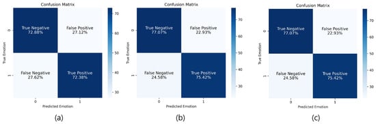 Confusion matrix for data labeled based on 99% confidence ellipse: (a) Method #1; (b) Method #2; (c) Method #3.