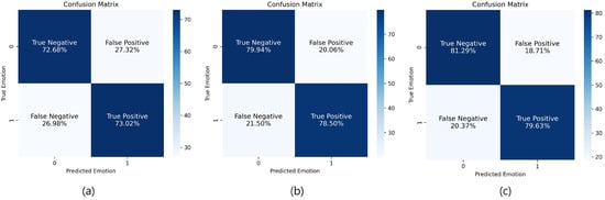 Transfer learning and knowledge distillation have been widely applied to improve model generalization and efficiency in affective computing. For example, Lee et al. [32] proposed a fast and accurate facial expression recognition framework using teacher–student knowledge transfer, demonstrating the effectiveness of distillation in emotion recognition. Maiden and Nakisa [35] introduced a continual learning approach for complex facial expressions by using knowledge distillation from basic emotion representations. Similarly, Zheng et al. [36] proposed a storage-efficient method called Student–Teacher Oneness (STO) to improve facial expression recognition through integrated teacher–student learning. In a different domain, such as speech recognition, deep transfer learning has also shown improvements in generalization capabilities [37]. Inspired by these approaches, we leverage EmoNet as a high-capacity teacher model and transfer its learned representations to a lightweight MobileNetV2 model. This strategy allows us to maintain performance while significantly reducing computational costs, which is essential for real-time facial expression recognition tasks.