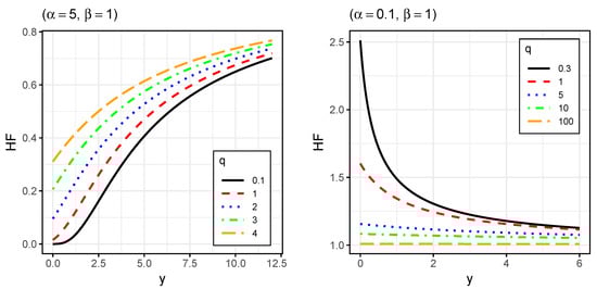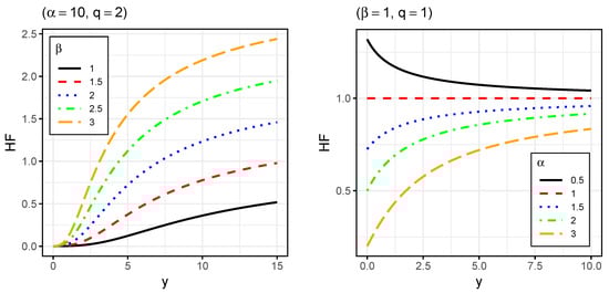 Let . Then, the hazard function (HF) of Y can be expressed as