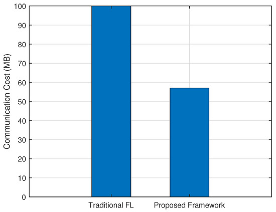 Comparison of communication overhead between the proposed framework and conventional federated learning.