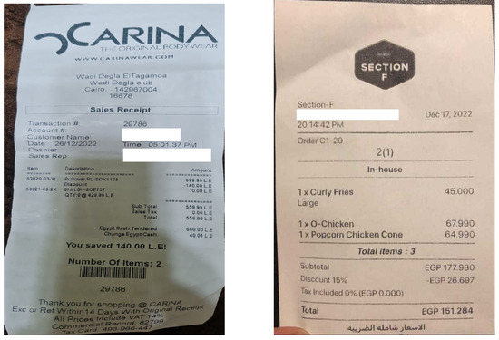 - Anonymization: To protect user privacy, all identifiable information, such as names and addresses, was obscured using white boxes. This step ensured compliance with ethical and privacy standards while preserving the receipts’ utility for research.