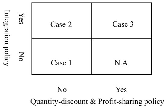 Figure 2. Case 1 is an equal strength case in point when the supplier is also very powerful, and they will make their own buying and selling decisions. Case 2 is an example of an unequal relationship between vendor and buyer, when Walmart’s suppliers have a high dependence on Walmart. Suppliers will choose to integrate into Walmart’s system to seek opportunities for stable development of their own businesses. So, the vendor will cooperate with the buyer to make decisions. In the example of Case 3, in addition to being highly dependent on Walmart, the supplier may have competitors in the Walmart system. Therefore, in addition to complying with the integration, the supplier also provides discounts, combined with Walmart’s profit-sharing mechanism, to create a win-win opportunity for both buyers and sellers. To ensure mutually beneficial strategy, in Case 3, a negotiation factor is incorporated to enable profit sharing between both parties.