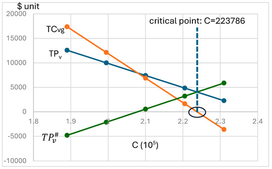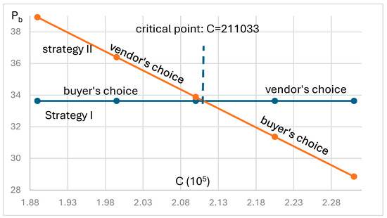 A critical value of C = 211,033 is identified as a strategic threshold. If the government’s cap is below this value, the buyer will opt for Strategy I, while the vendor will choose Strategy II. Conversely, if the cap exceeds this value, each player will select the opposite strategy. This critical value guides strategic decisions and highlights the importance of incorporating negotiation factors to distribute extra profits based on each player’s contribution. For government policy, this critical value suggests that setting caps below or above this threshold can significantly influence market strategies and outcomes. Another critical value, C = 223,786, is crucial for setting reasonable carbon emission quotas. If the quota is below this value, vendors may be reluctant to invest in green technology. This finding underscores the need for governments to set quotas that encourage sustainable investments.