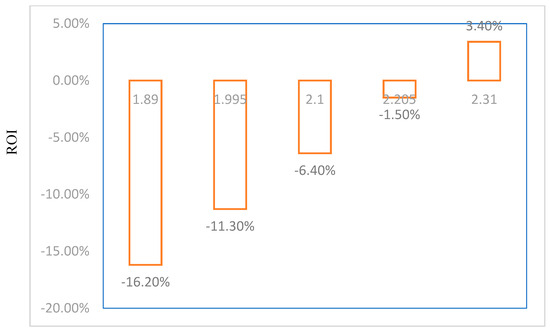 The critical point of C (the cap of carbon emission) can be a metric for selecting Strategy I and Strategy II. In addition, C is also a key factor affecting ROI. If the value of C is too low, the ROI will be negative, and the company will suffer losses.