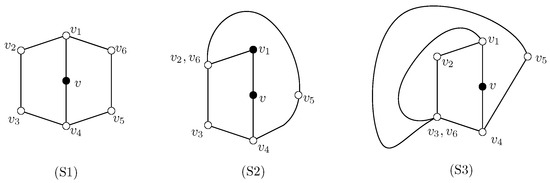 According to the definitions and Lemma 2(i), the pairwise disjointness of the sets and C is established. Moreover, it is not possible that is the set of all adjacent vertices of v. Note that and Thus, we have This inequality leads to Lemma 4 immediately. □