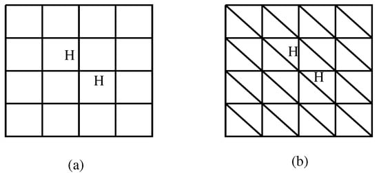 where and are piecewise bilinear interpolations based on the and , respectively. In (6), the square small domains are defined by