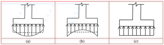 Figure 1 shows the diagram of soil pressure below of the contact surface of a foundation depending on the soil type for a rigid foundation. Figure 1a shows a rigid foundation on sandy soil. Figure 1b presents a rigid foundation on clay soil. Figure 1c shows the uniform distribution used in the current design [1].
