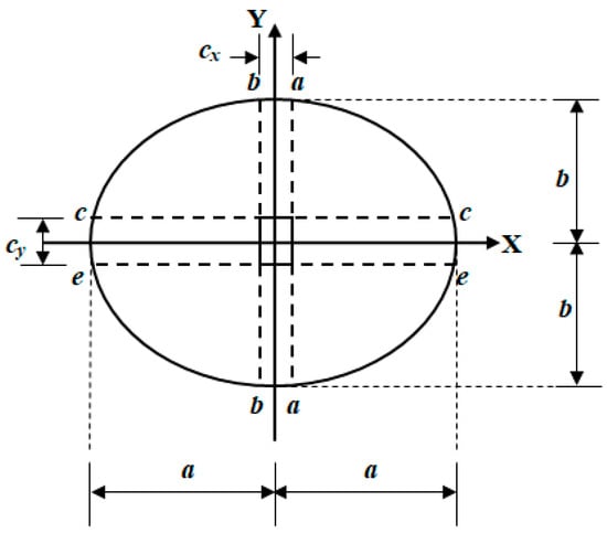 The works closest to the subject of elliptical footings are noted as follows. Luévanos-Rojas et al. [47] presented a mathematical calculation for the minimum cost of circular footings with column placement anywhere in the footing. Elhanash et al. [48] showed a new method for the optimal design of circular and elliptical footings using Lagrange multipliers to determine the equations of moments (the moments are determined in parts, first the pressure exerted by the delimited area is obtained, the center of gravity of this area is calculated, and then the moment is determined; only the Mua and Mub are obtained), bending shear (the bending shears are determined by the pressure exerted by the delimited area, and only the Vue and Vuf are obtained), and punching shear. However, the minimum cost and the numerical examples are presented only for circular footings and not for elliptical footings.
