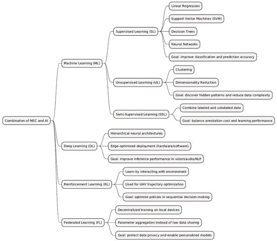 Until now, researchers have achieved a series of significant results around these research problems. In order to help readers quickly grasp the latest research progress in this field, this paper systematically compiles and summarizes these results. The taxonomy of AI in MEC is shown in Figure 2, which presents a structured classification of learning paradigms and highlights their specific roles and goals in mobile edge computing environments.