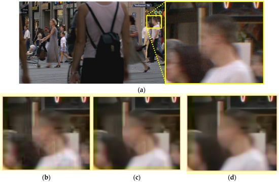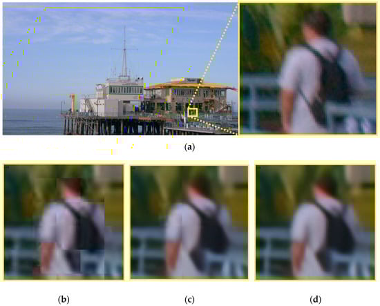 To address this robustly, a 3 × 3 convolution, followed by a PReLU activation, is integrated after the transposed convolution within the PWSA module. Crucially, it is the incorporation of this refined PWSA structure into the MS-MTSA architecture and the subsequent end-to-end training of the entire network from scratch that proved effective in suppressing these pixelation artifacts. This approach suggests that the architectural modification, when optimized globally during the full training process, enables the network to learn more robust internal feature representations that inherently prevent or minimize the formation of these specific distortions, particularly when dealing with high QP inputs. This refinement module, which is highlighted by the red dashed box in Figure 6b, therefore acts as a key enabler for cleaner feature reconstruction, smoothing residual inconsistencies, and enhancing local texture coherence without introducing significant computational overhead. This enhanced version of the PWSA, combining its original global attention capabilities with this targeted refinement, is referred to as refined PWSA throughout this work.