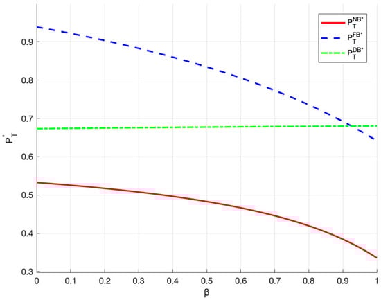 Proposition 1 shows that, in the absence of blockchain-based traceability, the consumer preference for green recycling significantly influences the profits of participants in the NEV supply chain. When consumers’ uncertainty about NEVs is below a certain threshold, i.e., 0 , the profits of the battery supplier and the NEV manufacturer increase and the market demand for NEVs increases as consumers’ green recycling preferences increase. Consequently, both the battery supplier and the NEV manufacturer can achieve more profit. When consumers’ uncertainty about NEVs is high, the profits of the third-party recycler will increase with the increase in the green recycling preference of consumers. In this scenario, consumers with a higher green preference are more likely to trust the third-party recycler who cooperates with the NEV manufacturer over other informal recycling channels. Therefore, as the volume of recycled batteries increases, the revenue of the third-party recycler increases.