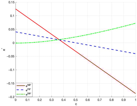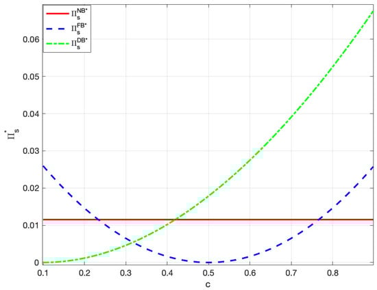 Proposition 2 implies that, in a forward blockchain traceability scenario, if the unit cost of blockchain usage is high enough, i.e., , the profit of the battery supplier increases as the unit cost of blockchain usage rises. The battery supplier uses blockchain technology to reveal the true quality of the battery to consumers. As blockchain usage cost increases, the battery supplier gains higher brand utility, thereby earning more consumer trust, which increases order volume and profits. With the increase in the unit cost of blockchain usage, more information about the battery will be disclosed, and consumers’ trust for the manufacturer and supplier will increase, resulting in higher sales of new energy vehicles and therefore higher profits. In a forward blockchain traceability scenario, without additional investment in recycling technologies, the third-party recycler will obtain higher-quality used batteries during recycling. Therefore, as the unit cost of blockchain usage increases, the profit of the third-party recycler increases.
