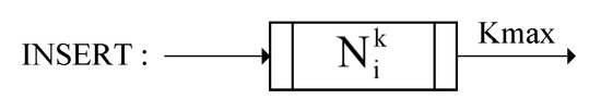 The COMBINATION operator, based on the current solution generates random swap neighborhood solutions and random insertion neighborhood solutions separately using the swap and insertion operators. In total, neighborhood solutions are obtained to form the composite neighborhood structure of the current solution . An illustration of the INSERT construction operator is shown in Figure 5.
