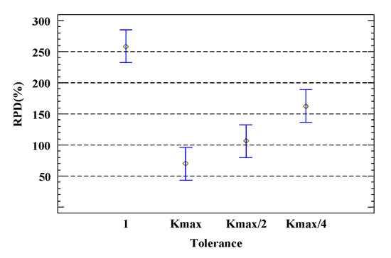 Figure 9 shows the impact of different neighborhood structure construction operators on the total delay of workflows. From the figure, it is observed that COMBINATION performs best, with an RPD 50% lower than INSERT and 75% lower than SWAP. Figure 10 displays the impact of different neighborhood search methods on the total delay of workflows. Among them, VNS significantly outperforms FNS, likely because VNS has a much larger search space than FNS, which can enhance the quality of the global optimal solution. Figure 11 shows the impact of different values for the maximum neighborhood structure number coefficient. From the figure, it is evident that as increases, the RPD value shows a downward trend until it stabilizes. Figure 12 presents the impact of different tolerance values. The lowest RPD value occurs when . According to the definition of neighborhood structure, when , all candidate neighborhood solutions are traversed, ultimately enhancing the quality of the optimization scheme.