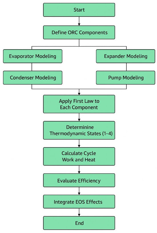 The Organic Rankine Cycle (ORC) is considered as a reliable and scalable technology for transforming low- to medium-grade thermal energy into valuable mechanical or electrical power. ORCs are especially advantageous in scenarios where a substantial amount of waste heat is emitted via exhaust gasses. ORCs employ organic working fluids with favorable thermodynamic characteristics to enable effective energy conversion from heat sources that would otherwise dissipate into the environment. This directly enhances fuel efficiency and lowers engine emissions, helping to meet contemporary environmental regulations and achieve industrial energy efficiency targets. Designing efficient ORC systems requires developing accurate mathematical models that capture the complex thermodynamic behavior of the cycle []. These models serve as predictive instruments for assessing critical performance metrics, including thermal efficiency, net power output, and exergy losses under diverse operational situations. The precision of these models depends on the right formulation of energy and mass conservation equations and the integration of precise thermophysical parameters of the working fluid. Inaccurate evaluation of these properties can result in poor system design, misleading performance estimates, and increased economic inefficiencies in actual applications.