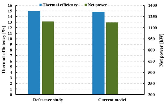 The overall performance of the cycle is expressed by the net power and thermal efficiency , as given in Equations (6) and (7), respectively.