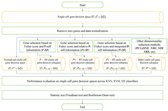 - Zhang, J.; Yu, G.; Huang, D.; Wang, Y. Gene selection in a single cell gene decision space based on class-consistent technology and fuzzy rough iterative computation model. Appl. Intell. 2023, 53, 30113–30132. [Google Scholar] [CrossRef]