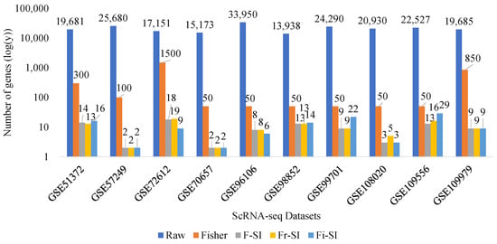 - Sheng, J.; Li, W.V. Selecting gene features for unsupervised analysis of single-cell gene expression data. Briefings Bioinform. 2021, 22, bbab295. [Google Scholar] [CrossRef]