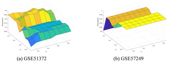 Accuracy varying with and (GSE51372 and GSE57249).