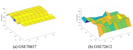 Accuracy varying with and (GSE70657 and GSE72612).
