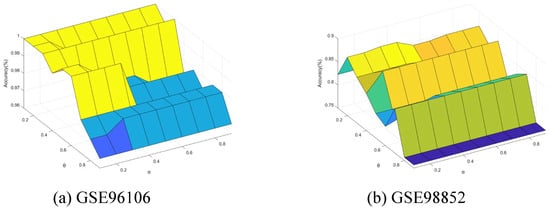 Accuracy varying with and (GSE96106 and GSE98852).
