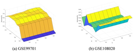 Accuracy varying with and (GSE99701 and GSE108020).