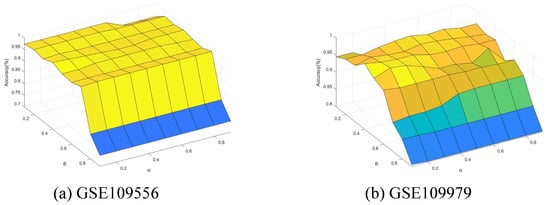 Accuracy varying with and (GSE109556 and GSE109979).