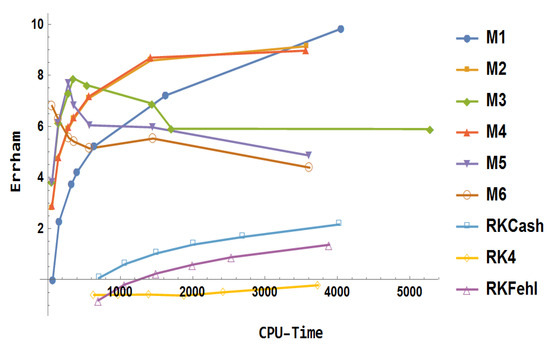 - Cash, J.R.; Karp, A.H. A variable order Runge–Kutta method for initial value problems with rapidly varying right-hand sides. ACM Trans. Math. Softw. 1990, 16, 201–222. [Google Scholar] [CrossRef]
