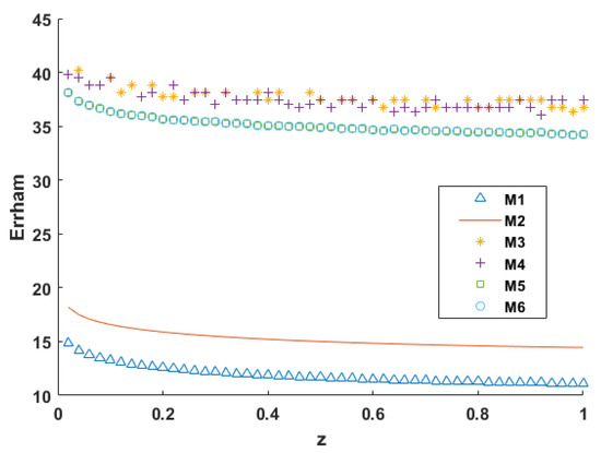 Thus, and the block method (5) is of the sixth-order amplification factor. Similarly, the phase error for (5) using Taylor’s expansion on direct formula (18) from Theorem 2 for (5) with is