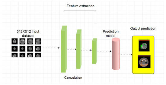 Figure 2 depicts the convolution network. In the context of the convolution in this research paper, the input dataset for both artefacts is placed in the convolution model for feature extraction. This occurs after the model has been trained with 88 input image datasets. Upon completing this task, the results are transferred to the prediction model, 0, and the system automatically produces the output results. The full convolution network comprises the input dataset (metal and/or ring artefact). The CNN architecture in the context of this research paper is based on the application of the convolution model on the input dataset. The convolution structure, as presented in Figure 2, comprises the input dataset that is transformed and passed to the feature extraction layer. In this layer, features such as edges, texture, and colour are detected. However, the input matrix dimension utilised in this algorithm is a 3 × 3 matrix that is applied to the image dataset.