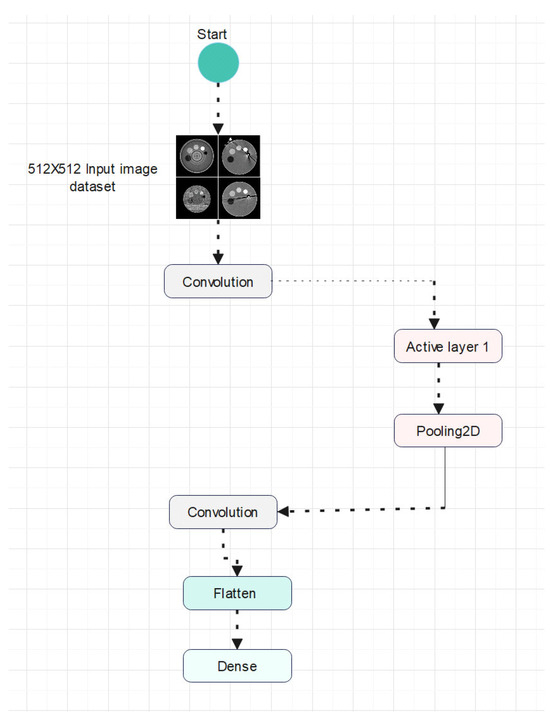 Figure 4 further presents the input dataset that is applied to the model in the convolution layer. Upon the successful application of the convolutions, the process is highlighted at the activation and Pooling2D layers. Additionally, the features are also applied in the convolution layer and the layer is flattened and placed in dense mode; as a result, the modelling is achievable.