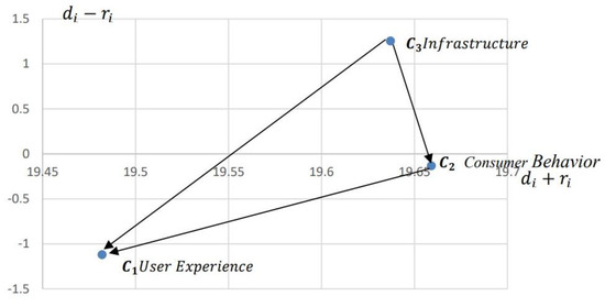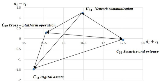 The value represents the degree to which factor i affects the other factors. The value signifies the extent to which factor i is influenced by the other factors. The value represents the degree of centrality of factor i among all factors. The value indicates the net influencing degree of factor i among all factors. A positive result indicates that factor i exerts influence over other factors, whereas a negative result suggests that factor i is the recipient of influence from other factors.