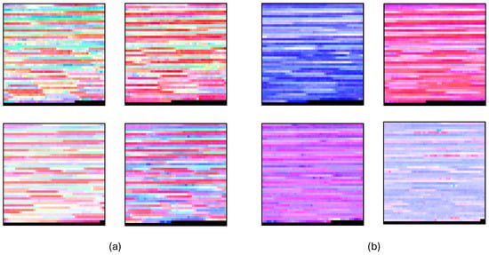 Recent research has leveraged deep learning to evaluate gaze patterns for AD detection. These studies primarily focused on analyzing gaze sequences. Recurrent neural networks (RNNs) such as long short-term memory (LSTM) and gated recurrent units (GRUs) have been employed to analyze temporal gaze patterns [,]. Another approach involves generating gaze heatmaps that visually represent the spatial gaze distribution and are analyzed using a CNN [,]. However, although these heatmaps efficiently model the statistical characteristics of a patient’s visual movements based on their spatial distribution, they fail to capture dynamic temporal interactions. Consequently, their ability to fully represent and illuminate user cognitive processes is limited.