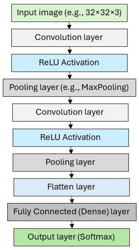 CNNs are artificial neural networks, popular for their capabilities to handle a wide range of artificial intelligence tasks. CNNs are primarily applied in computer vision and image processing for image analysis and classification [42]. The fundamentals of CNNs include the following: