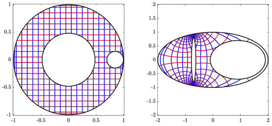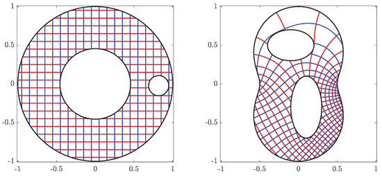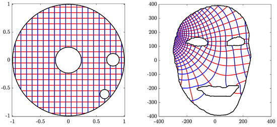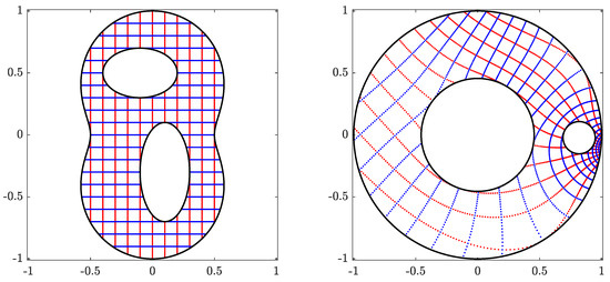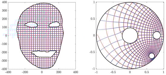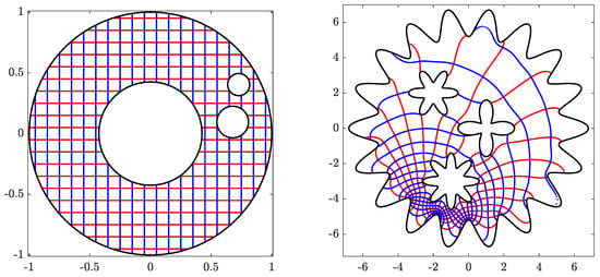 - Wegmann, R. Fast conformal mapping of multiply connected regions. J. Comput. Appl. Math. 2001, 130, 119–138. [Google Scholar] [CrossRef]