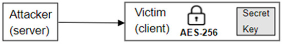 Figure 2. Only symmetric encryption ransomware. - Client-side asymmetric encryption (Figure 3). In this case, the ransomware generates an RSA key pair on the client machine, encrypts all files with the public key, and sends the private key to the server for storage. This method has some disadvantages. First, encryption is slow because large files take a long time to RSA. Secondly, it requires an internet connection on the victim’s machine to send the private key to a server. If neither of the two parts is connected, there will be a problem. In this case, the ransomware may stop executing it, encrypt files, and permanently delete the private key, or simply store the private key on the victim’s machine until the connection is established.