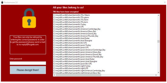 - Kharaz, A.; Arshad, S.; Mulliner, C.; Robertson, W.; Kirda, E. Unveil: A large-scale, automated approach to detecting ransomware. In Proceedings of the 25th USENIX Security Symposium, Austin, TX, USA, 10–12 August 2016; pp. 757–772. [Google Scholar]