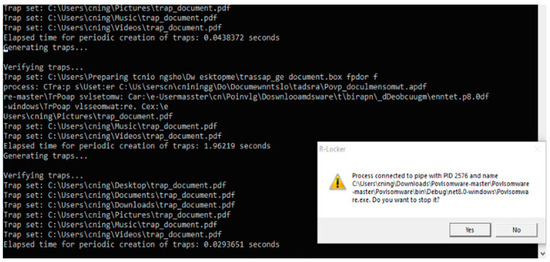 When R-Locker detects ransomware, a chat window will appear, prompting the user to confirm whether to stop the ransomware process. Selecting “Yes” in the chat window will terminate the ransomware’s activity, as depicted in Figure 13.