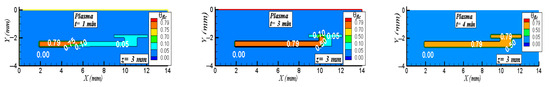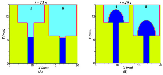 5.1. Results for Two-Dimensional Diffusion of Water and Solute in Strips with Variable Widths