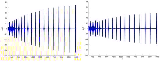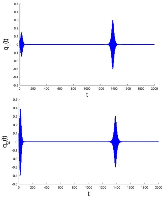 For , a first illustration is presented in Figure A1, where we have small initial conditions and .