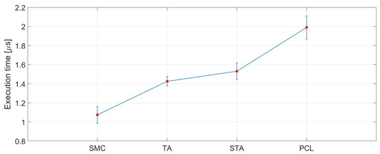 An additional parameter that will be introduced in this research is the duration of the computing unit of each controller. This has been performed through instructions “RTLIB_TIC_START()” and “RTLIB_TIC_READ()” from the capabilities of the dSPACE language library. These will provide the information of execution time measurement from the controller block.