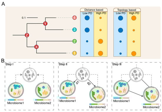 Based on these observations, we hypothesize that microbial communities with low PD tend to transition toward those with higher PD. As illustrated in Figure 1A, the two dimensions of phylogenetic diversity, namely branch length and topological structure, can be used to distinguish between high- and low-PD communities, depending on their composition.