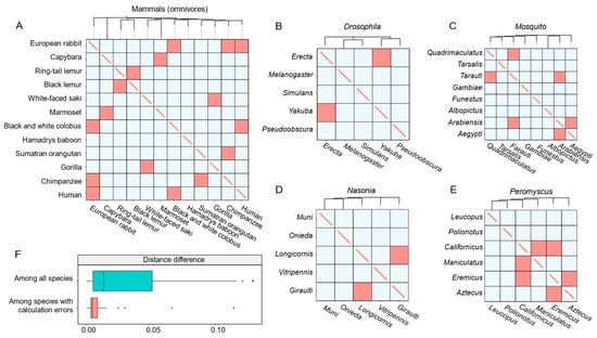 For further validation, we applied the MT-tracker to the SAG dataset, which included intestinal microbiomes from 24 small animals, encompassing 5 species of the genus Nasonia, 6 species of the genus Peromyscus, 5 species of the genus Drosophila, and 8 species from the family Mosquito. The MT-tracker achieved a high average accuracy of 87.3% in reflecting the phylogenetic relationships across these groups (Figure 4B–E).
