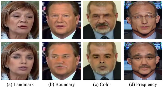 - Shiohara, K.; Yamasaki, T. Detecting deepfakes with self-blended images. In Proceedings of the IEEE/CVF Conference on Computer Vision and Pattern Recognition, New Orleans, LA, USA, 18–24 June 2022; pp. 18720–18729. [Google Scholar]