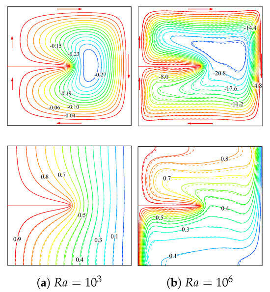 4.1.1. Impact of Control Parameters on Flow and Thermal Contours