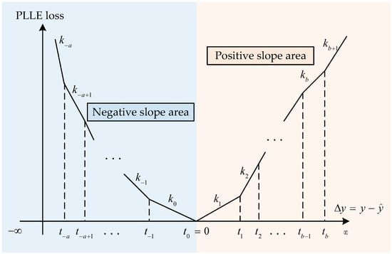 In this section, we detail the PLLF of a given , where represents the difference between the realized label y and the predicted value . A visualization of this piecewise linear loss function is shown in Figure 1. To construct the piecewise structure, we introduce a set of threshold values , which partition the domain of into intervals. Specifically, the first interval is defined as , with an associated slope , and the last interval is defined as , with an associated slope . The remaining intervals are divided such that a intervals cover the region , and b intervals cover the region , with . Specifically, within the middle region , the domain is further partitioned into intervals , where , each assigned a corresponding slope . Correspondingly, .